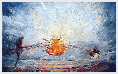 Sonnenbote 50 x 40 cm, Acryl- Mischtechnik auf Leinwand